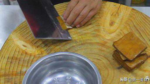 香干200克,每块一分为二,再斜刀切成片,放在盆里,用清水泡上,去一下豆腥味,然后放置盆里。