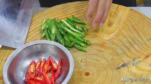 小米椒50克,斜刀切成辣椒圈,放在盆里。