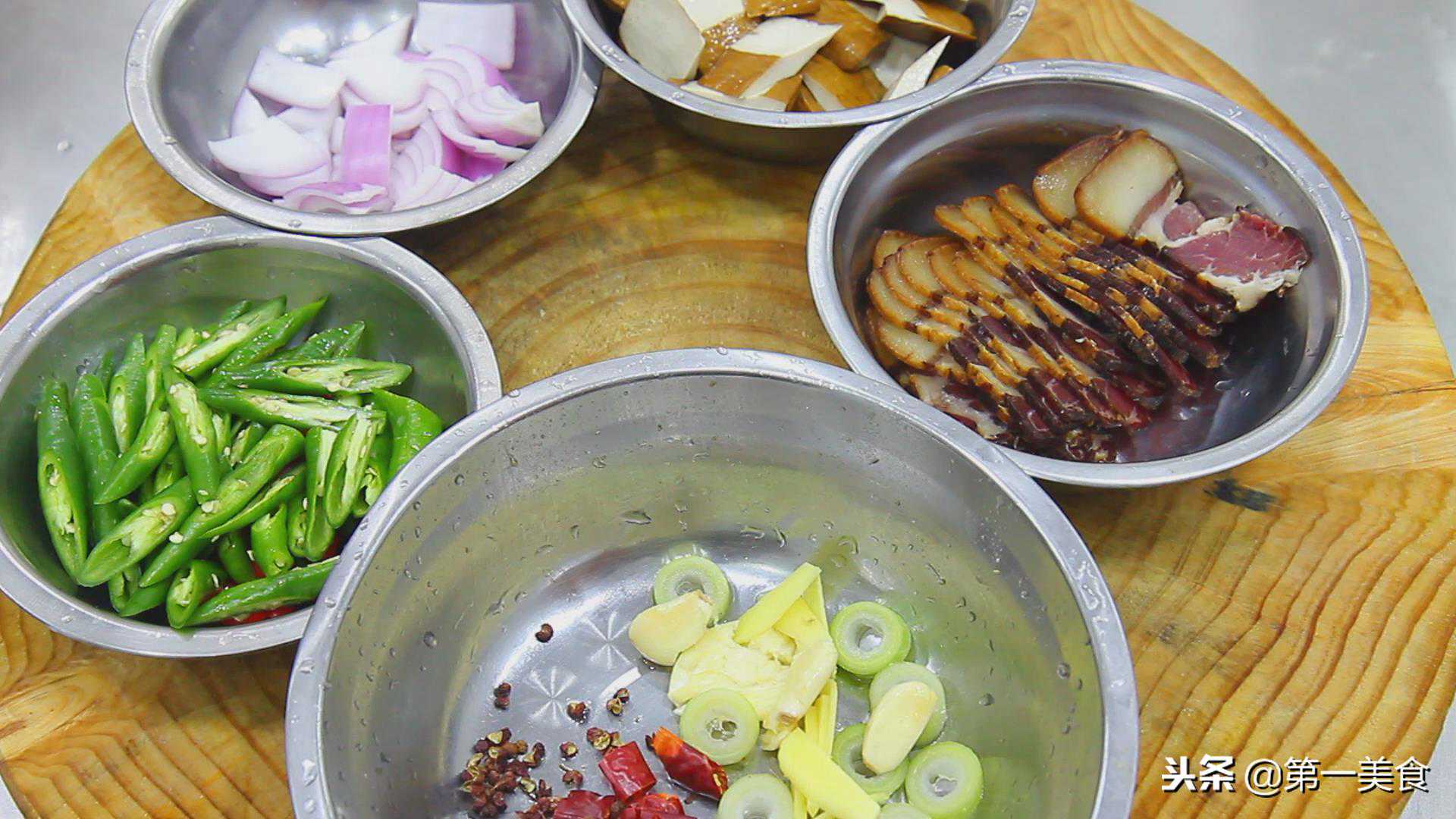 腊肉200克,先用清水泡几分钟,这样可以泡出腊肉中多余的盐分。