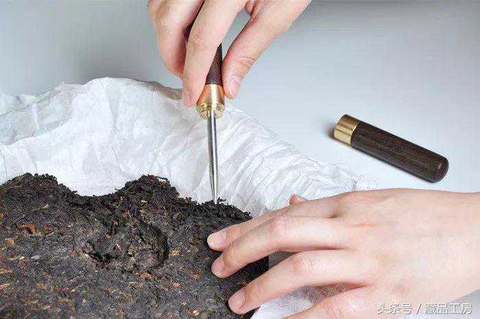 用于撬茶饼。结构包括带有刀柄的刀体及刀鞘,利用刀体前端的尖刃可顺利的插入茶饼内,以此沿被切轨迹重复上述方法,这时只要轻加很小外力,即可实现茶饼部分的分离。