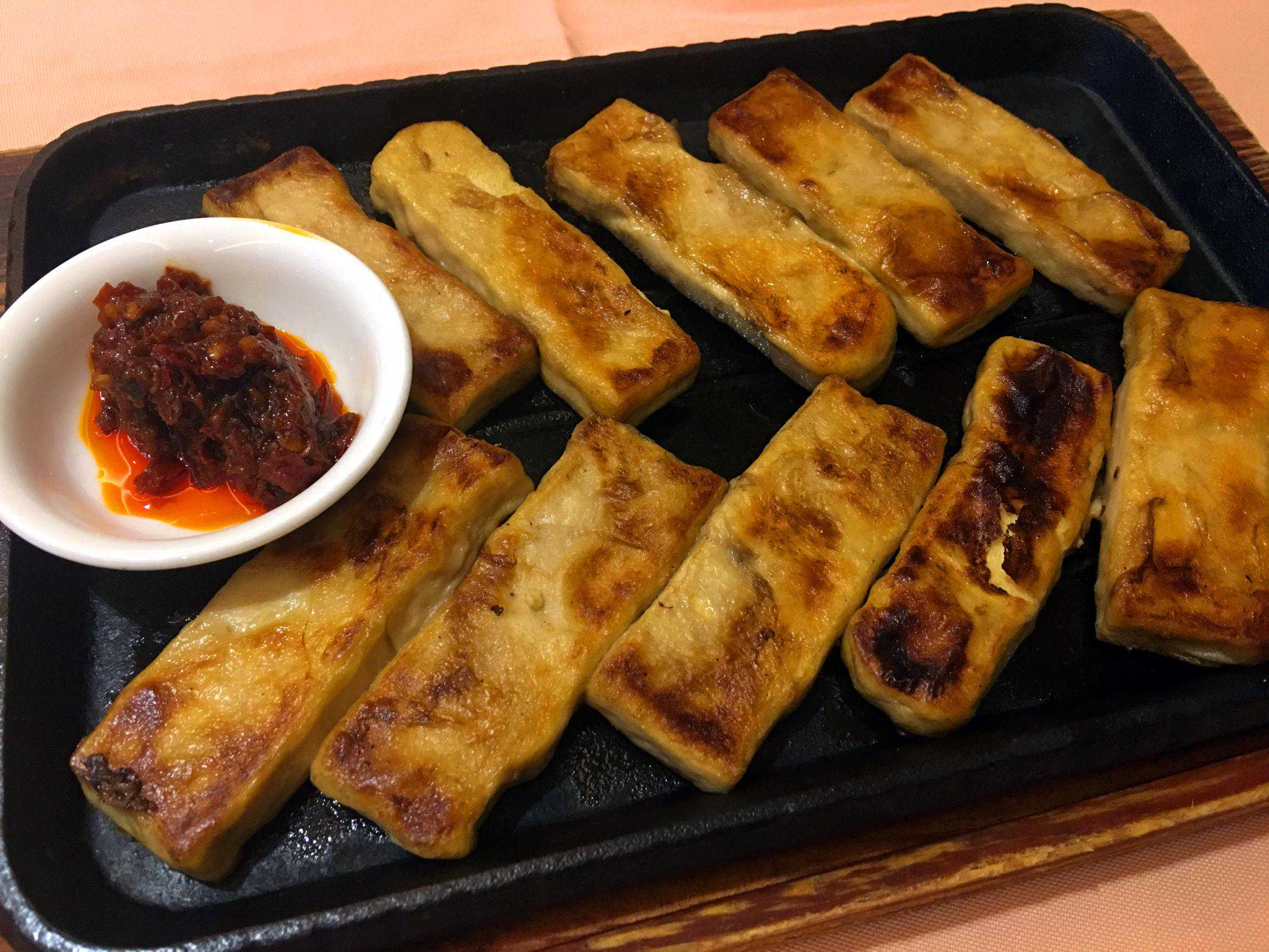 ▲铁板后的毛豆腐没有“毛”