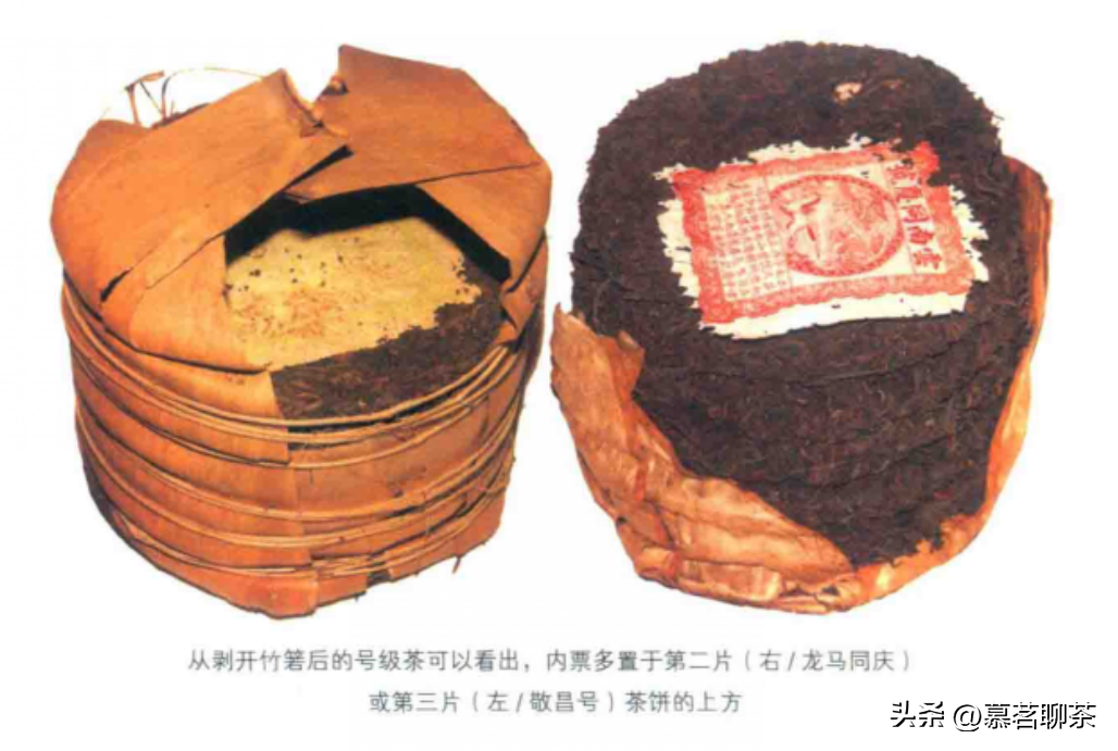 参照现存世的号级茶,单饼绝不可能有外包纸,仅有内飞与大票(又称“简票”);在整筒(七片)的包装上,最底层的一片茶饼大多倒转放置;又称“大票”的内票纸则大多置于第二片,少数在第三片的上方;内飞为手工制作的薄棉纸,并多以木刻盖印。而且,当时作为包装的笋叶,在竹笋生产季节绝不可采摘使用,因为彼时的笋叶含有甜份,极易长虫,只有采笋季以外的笋壳才堪运用。