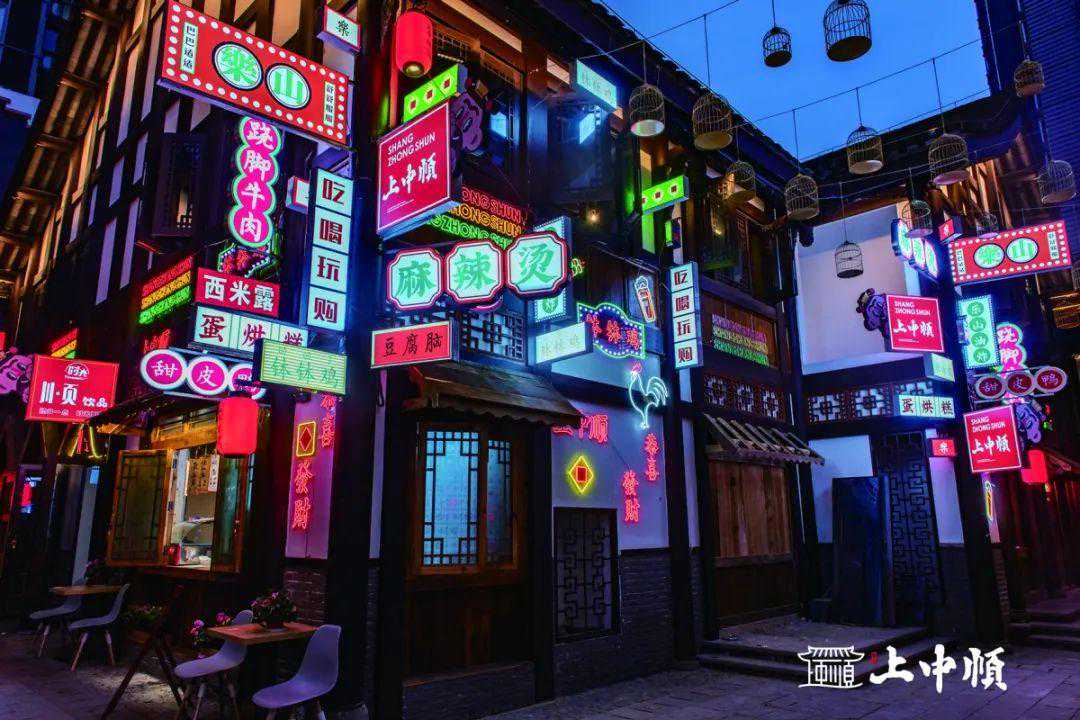 霓虹灯映上青石板