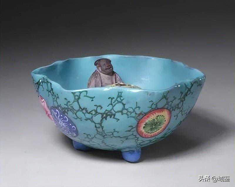 2017年4月的香港苏富比也曾拍出过一件类似款——钧瓷公道杯,设计比这件稍微复杂一点,凑近可以清楚地看到孔内小人的面目神态。