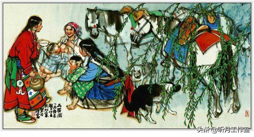 当代著名画家史国良《搓线图》史国良先生的国画作品,展现出了藏族女性的精神气质,具有浓厚的民族特色。画面中人物刻画各具神态,各赋生命精神,酣畅的笔墨,浓郁的生活气息以及对劳动人民的歌颂,都极富感染力。