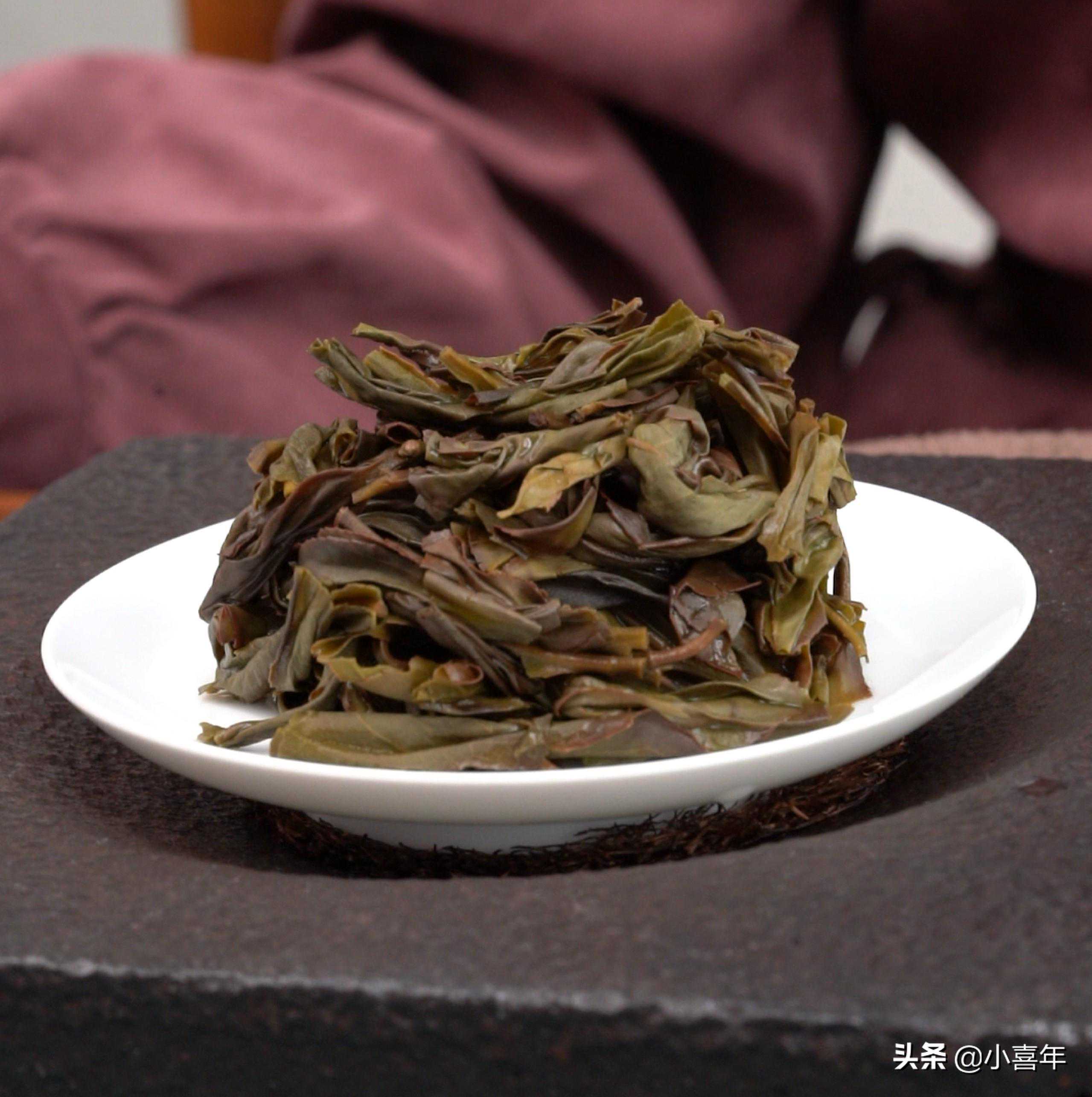 4.叶底冲泡十余泡后,盖碗中的叶片完全舒展开来。叶底匀齐较鲜活,富有弹性,色泽绿褐较润。