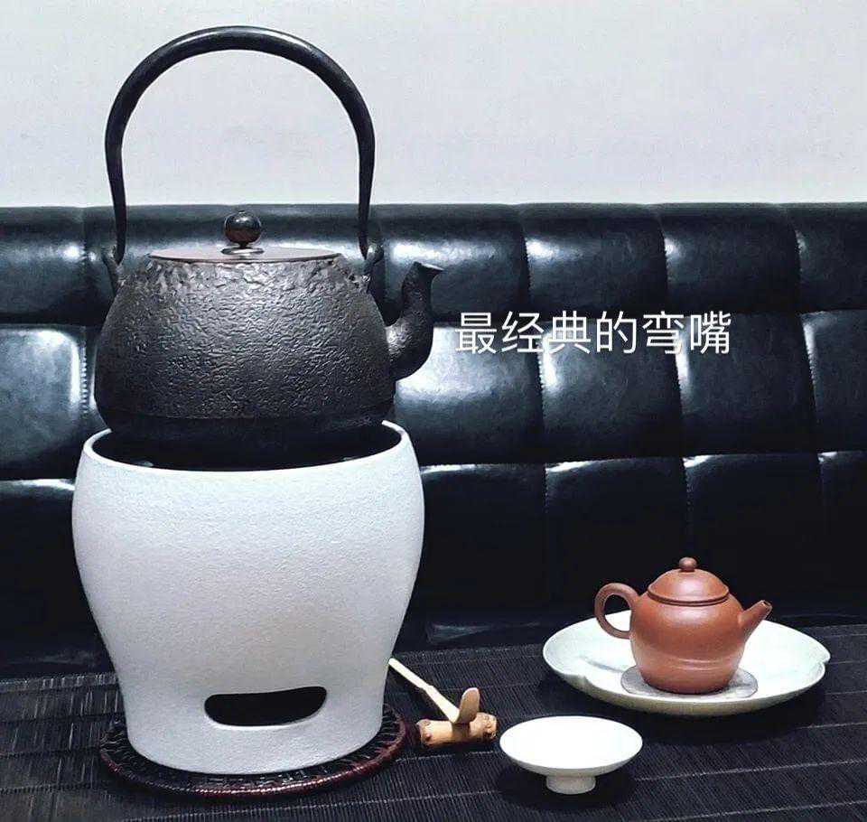 最后和茶友们谈谈这种最古老的“弯型流嘴”,它和提梁的组合是最为经典的组合,也是最优的组合,尤其在日本铁壶中最为常见,最是最能满足普洱茶冲泡需求的一种形式。