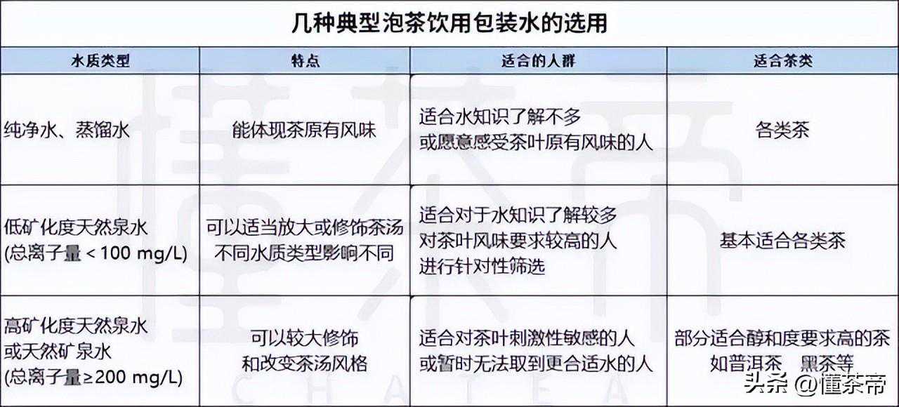 这里小懂整理了一些市面上常见的泡茶水,大家可以根据自己的情况自行选择。