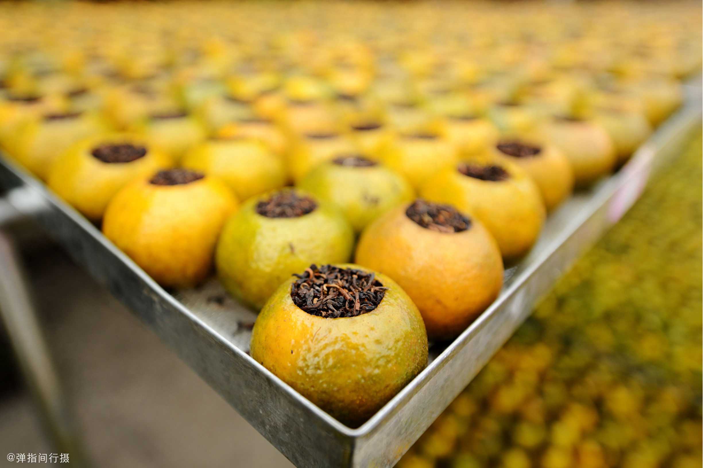 洗净晾干后的柑皮,逐个灌满云南特级普洱茶,可根据不同口味,放入不同年份的普洱茶(当然茶料越好,成品的价格也就更高),最后盖上“小帽子”,一个柑普茶就初步形成了。随后放入恒温炉烘干,比起最早用柴火加温,机器加工有效保证了温度的稳定,成品没有烧焦味,也更加干净卫生。