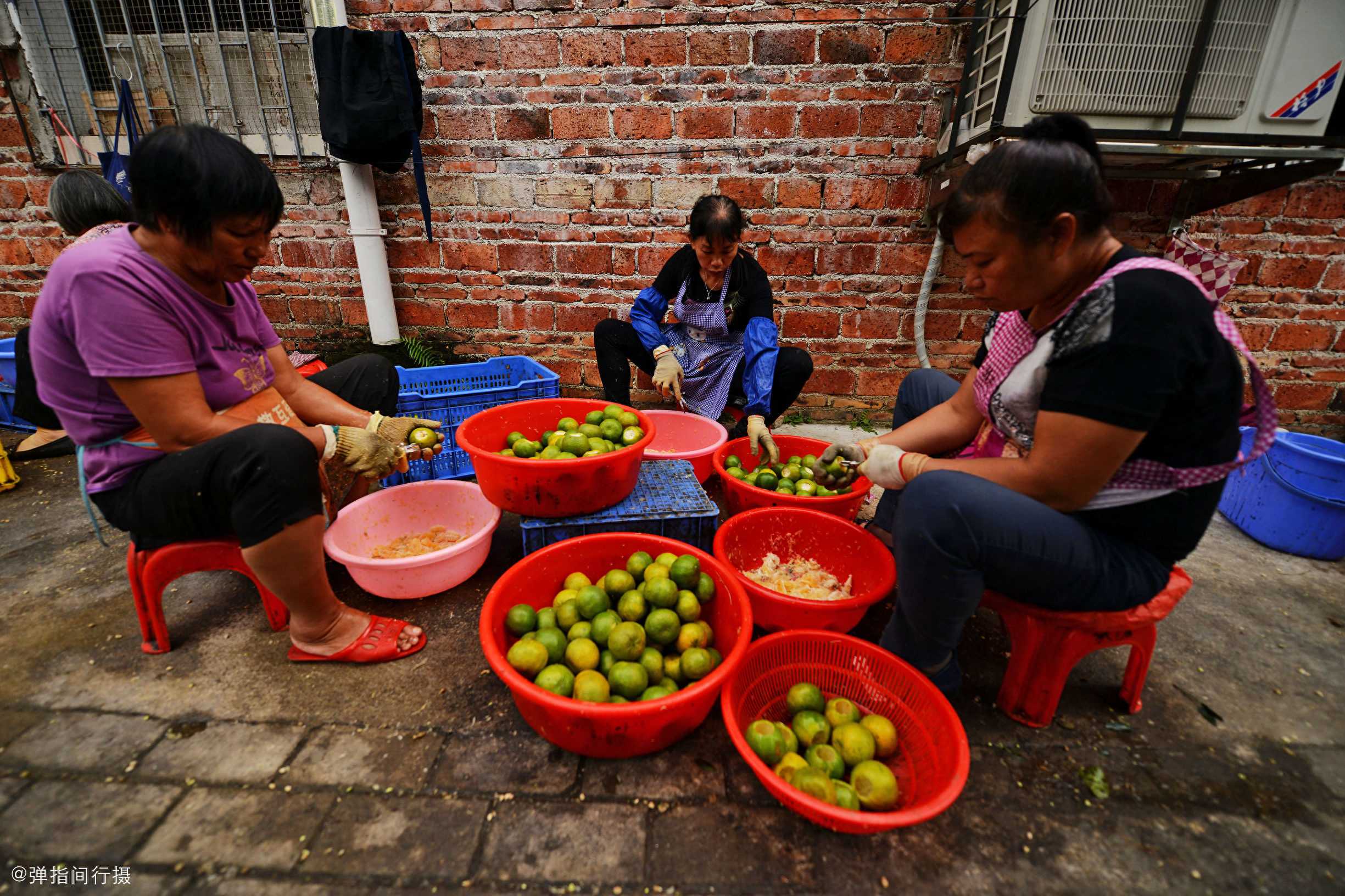 手工作坊都是清一色上了年纪的阿姨,她们每天对面成千上万的柑子,全程人工操作重复劳动,辛苦枯燥的工序,没有定力的年轻人是很难做的了的,所以几乎看不到年轻人的身影。