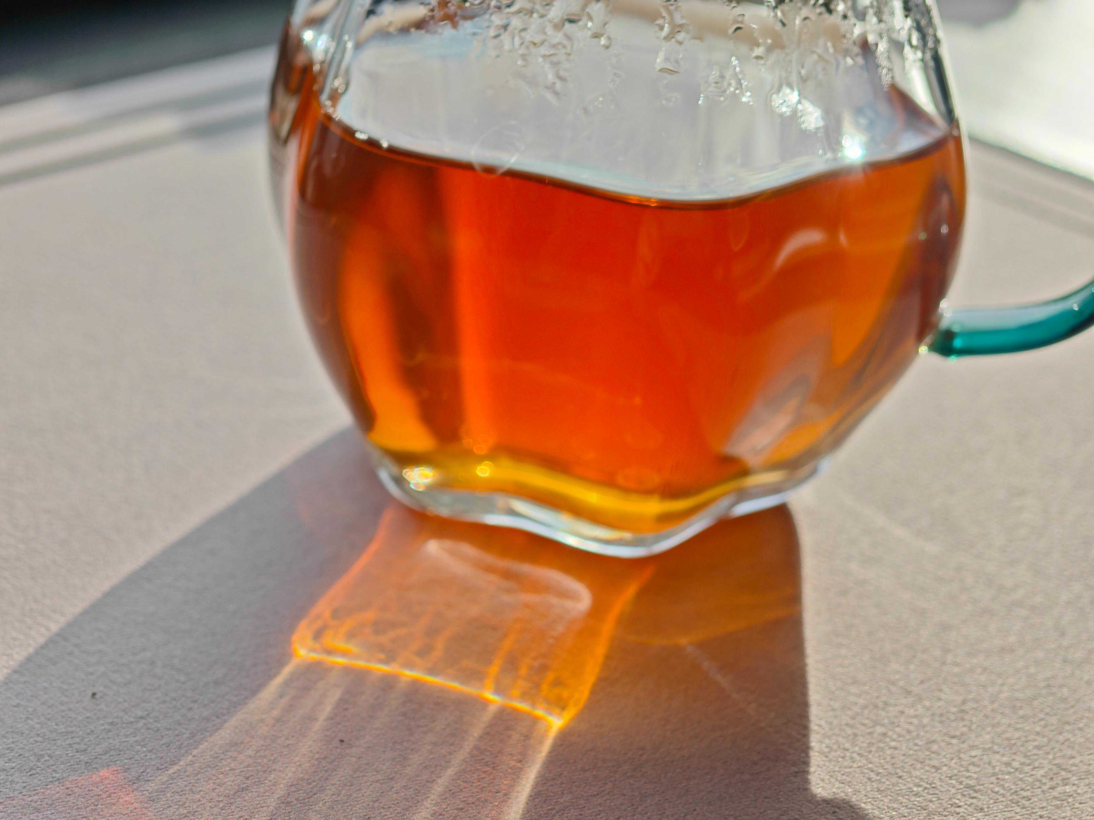 第2道汤还是五秒出汤。这道汤非常的浓稠,包浆感十足,甚至有一些发泡感,茶汤的滋味厚度非常的好。入口回甜,有馥郁的花果香气,这道汤非常ok。喝完这道汤,我们又在思考市面上大多数300价位岩茶的存在必要性了,把口粮料子都送去武夷星这样的大厂做吧。不知道有没有能在这个价位超过武夷星的茶厂,给我们寄个样,让我们再多发出一些这样的感慨。