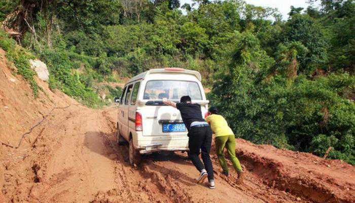 通往那卡的公路有着陡峭的山和U形弯,而且很长一段路程都是“土路”。一遇到下雨,裸露的红土就会和着雨水一起淌成泥河、冲上道路。严重的地方,只有推车才能前进。