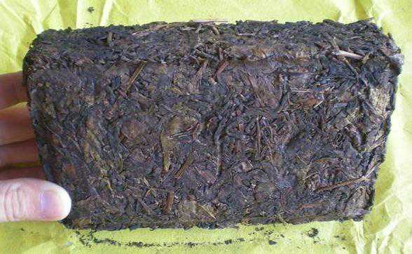 青砖茶主要产于湖北省咸宁地区。以老青茶作原料,经压制而成。其外形为长方砖形,色泽青褐,香气纯正,滋味尚浓无青气,水色红黄尚明,叶底暗黑粗老。