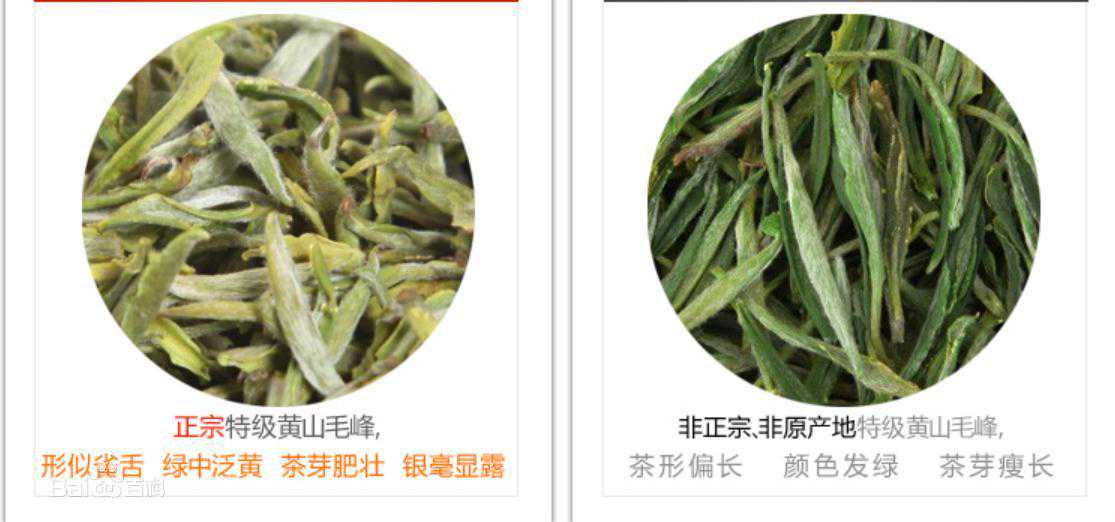 黄山毛峰主要产于安徽黄山汤口、祁门凫峰、富溪一带,1875年清朝光绪纪元始制。其品质特点是:条索细扁,翠绿之中略泛微黄,色泽油润光亮;尖芽紧偎叶中,形似雀舌,并带有金黄色鱼叶,又称“叶笋”或“金片”。