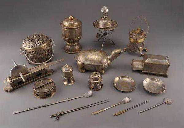 王建荣:复原唐宋茶艺表演其实是有相当大的难度,首先一个就是器具要到位。陕西扶风法门寺地宫曾出土一套唐僖宗时代的皇家宫廷茶具,有茶笼、风炉、茶罗、茶碾、茶盒等,这套茶具为银质鎏金;还有就是陆羽提出的二十四器,是非常明确的一组能够展现唐代文人茶的工具。