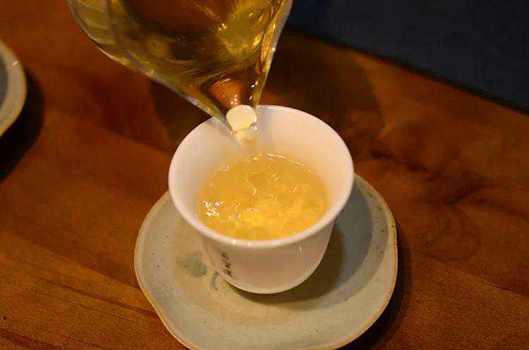 百里遥2020《懂过》头春古树茶,喝到10泡以后茶滋味依然饱满浓郁,尝试进行了20秒——30秒不等的短时闷泡,汤色从前段的金黄透亮慢慢变得明黄纯澈,而懂过茶的风格也在这变化过程中骤然转变,茶汤中出现令人惊艳的甘美滋味,咂舌细品,唇舌之间觅不到一丝苦涩;