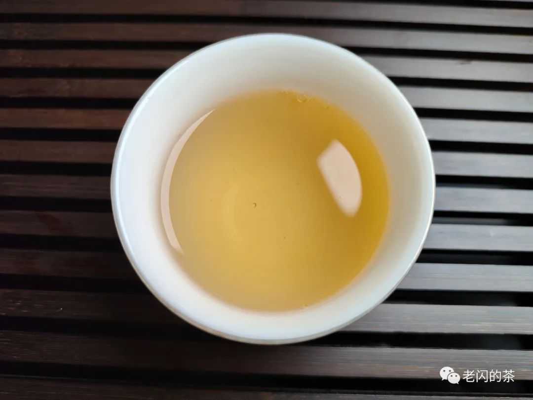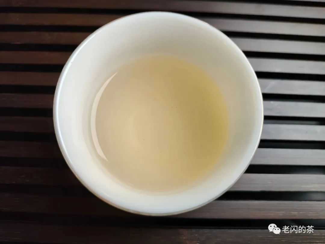 比较耐泡,20泡以上,透亮明净,没有杂质,依旧茶气弱但鲜爽度高,感觉再存上几年是有后期潜力的。