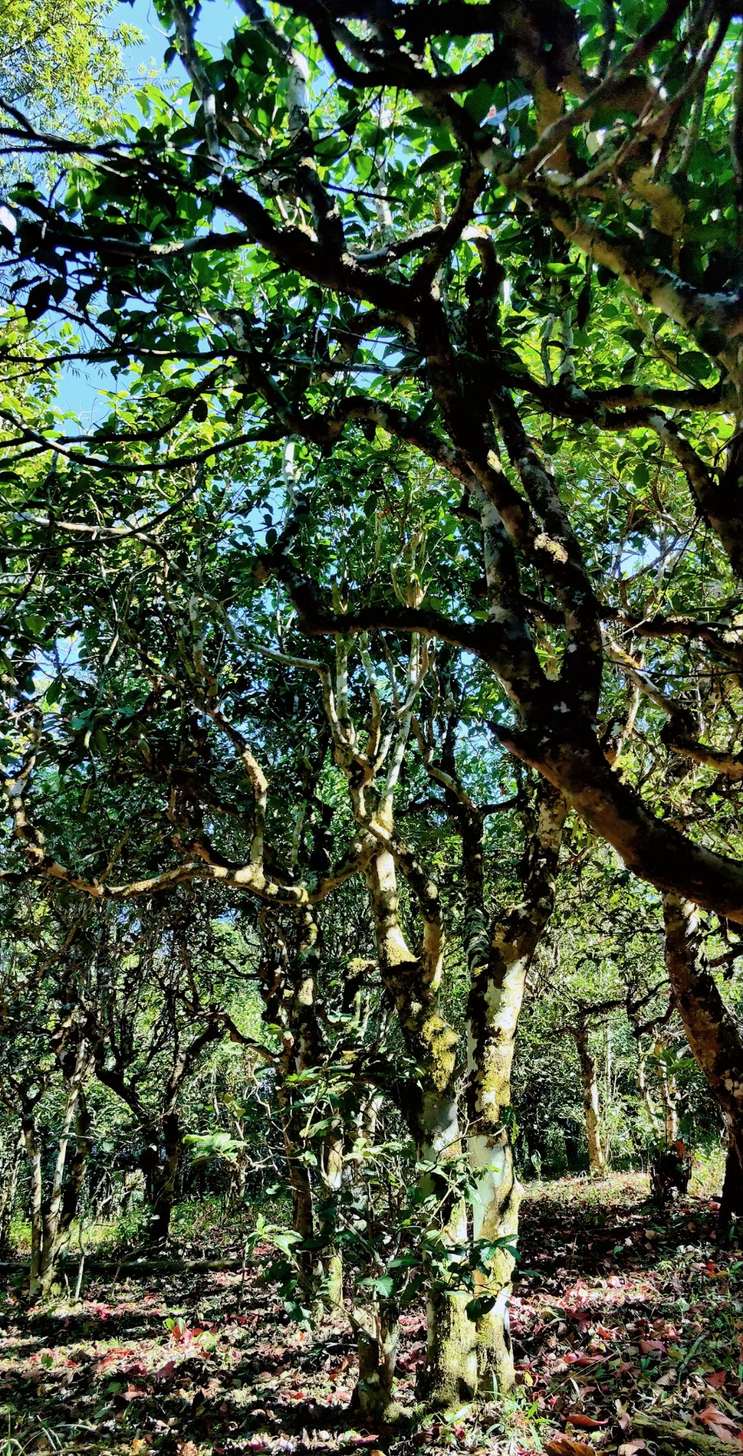 选定古茶树长势旺盛,枝干粗壮多分支,冠幅繁茂,颇具布朗雄风。班盆老寨大龄古茶、高奢单株即将上市,预定尊享。
