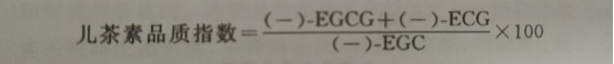 儿茶素品质指数是表达茶叶品质的经验参数。1963年阮宇成、程启坤提出。其表达式为: