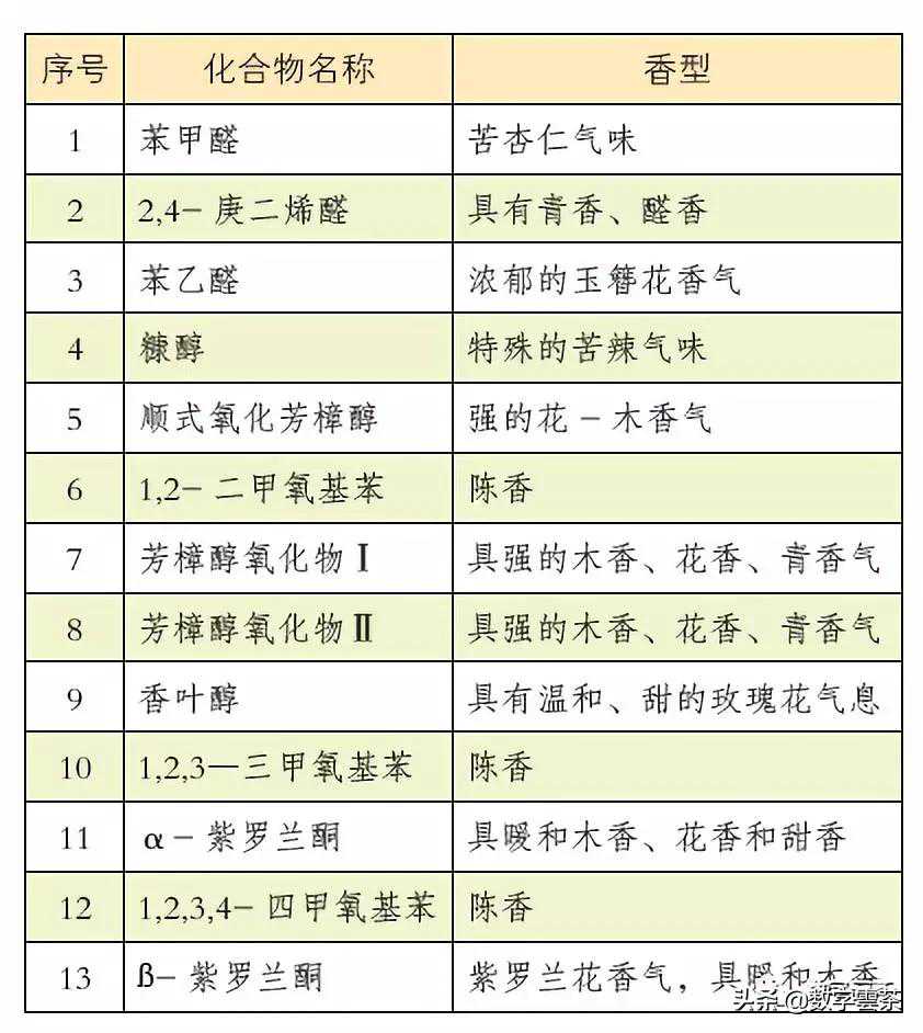 普洱茶中常见化合物所表现的香型: