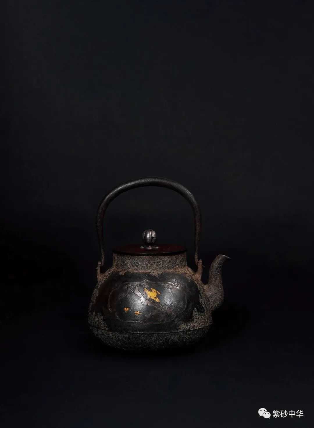 Lot7846四代金寿堂雨宫宗甫造嵌金银长闲形铁瓶