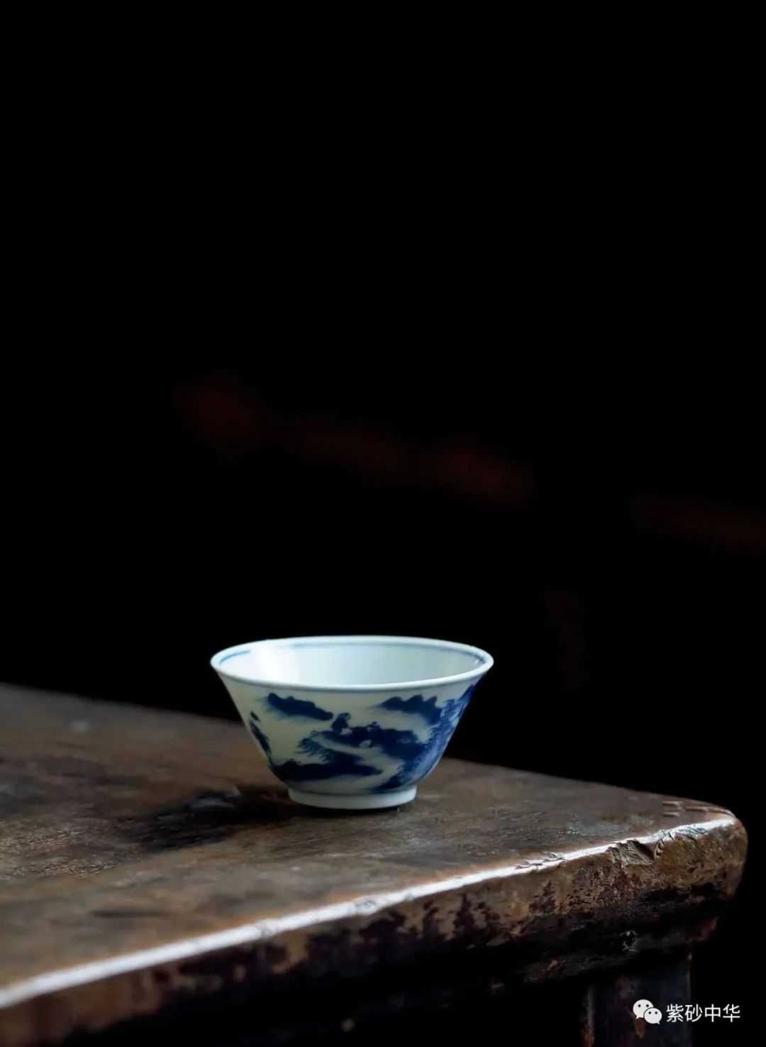 Lot7853清康熙大明成化年制款浆胎青花溪山揽胜杯(四只)