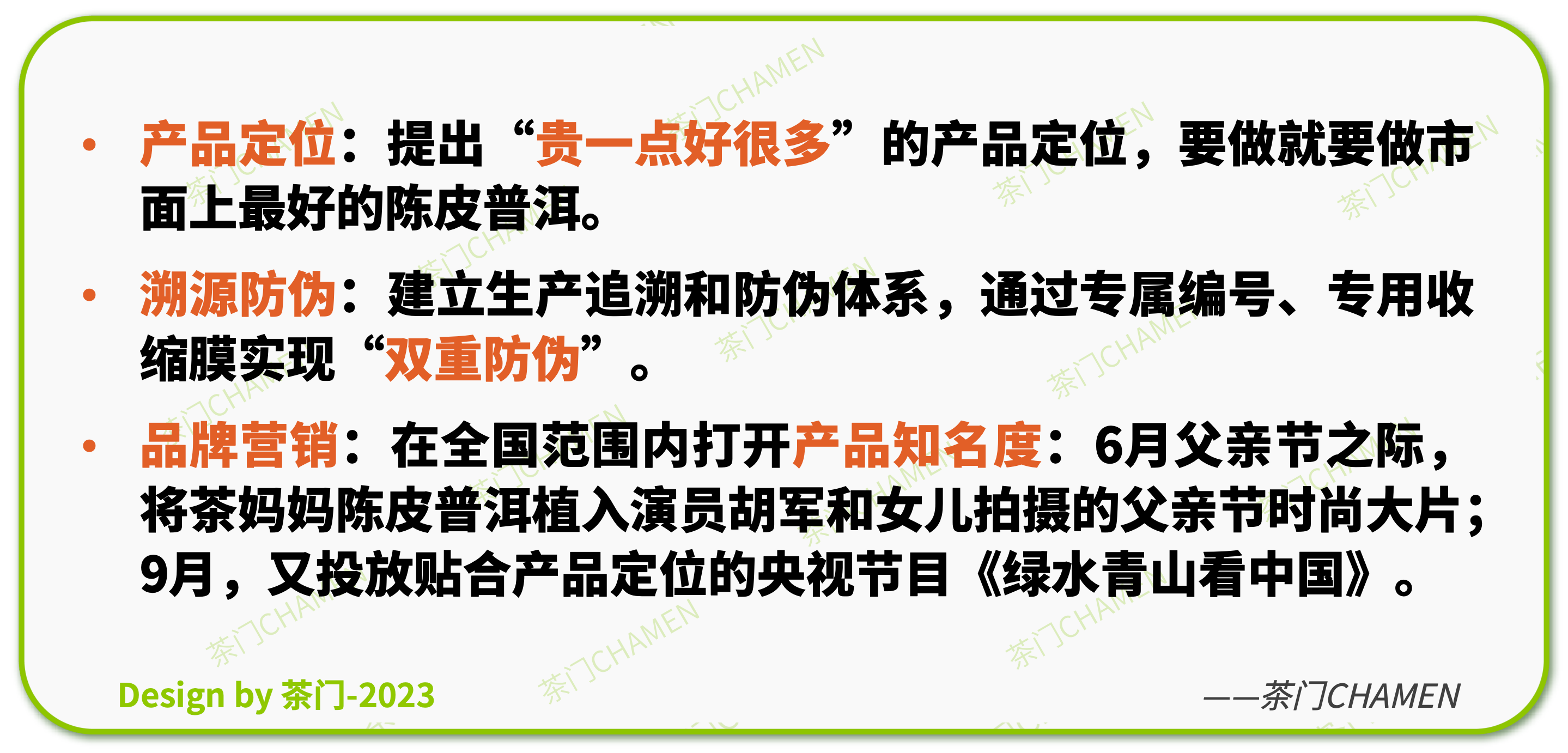 某种程度上,或许也是借着茶妈妈陈皮普洱爆品的走红,以及该子品牌的首战成功,其在多品牌矩阵上,显然已从原来以非标型普洱茶为主的“澜沧古茶”这个主品牌,开始逐步往更加标准化、快消化的子品牌进行布局延展,其中不乏投入许多资源、重金下注,一时可谓左右开弓,预计赋予很高期待。