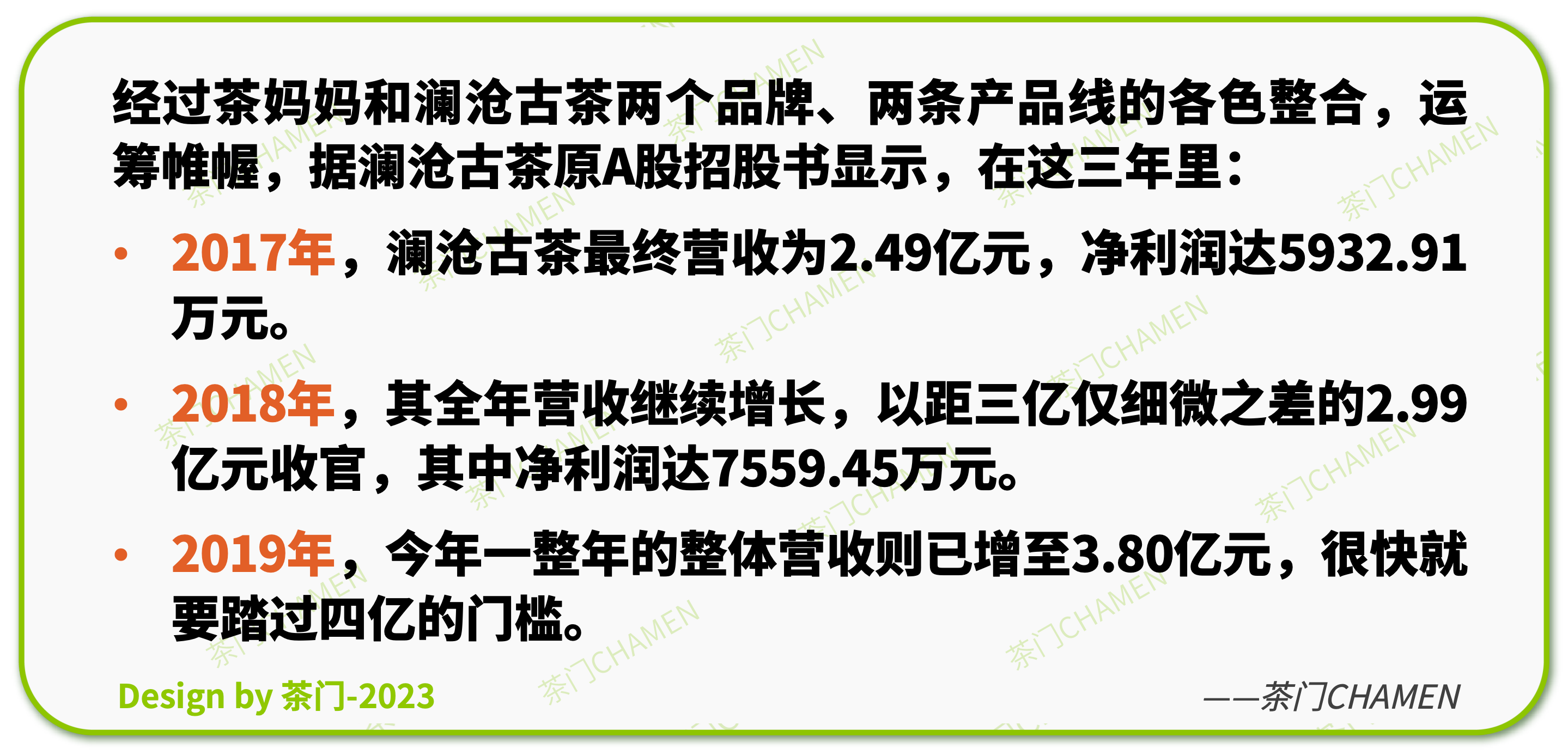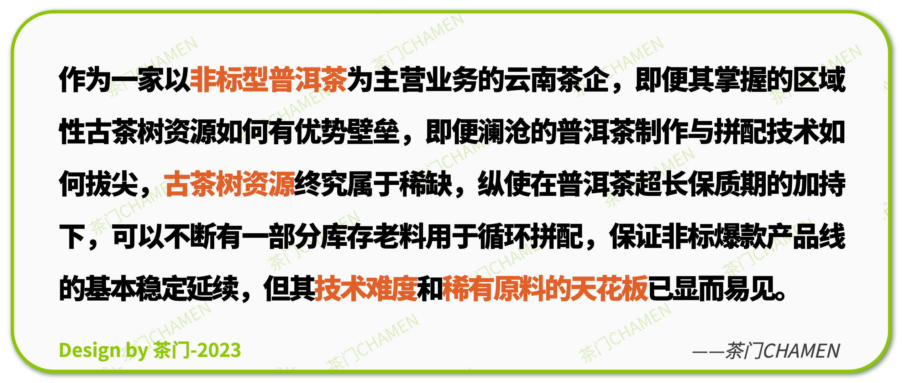 现在,就让我们再次回到创始人和澜沧古茶公司层面,从茶门基于整个茶行业视角最后给予的一段评价,鸣金收尾。