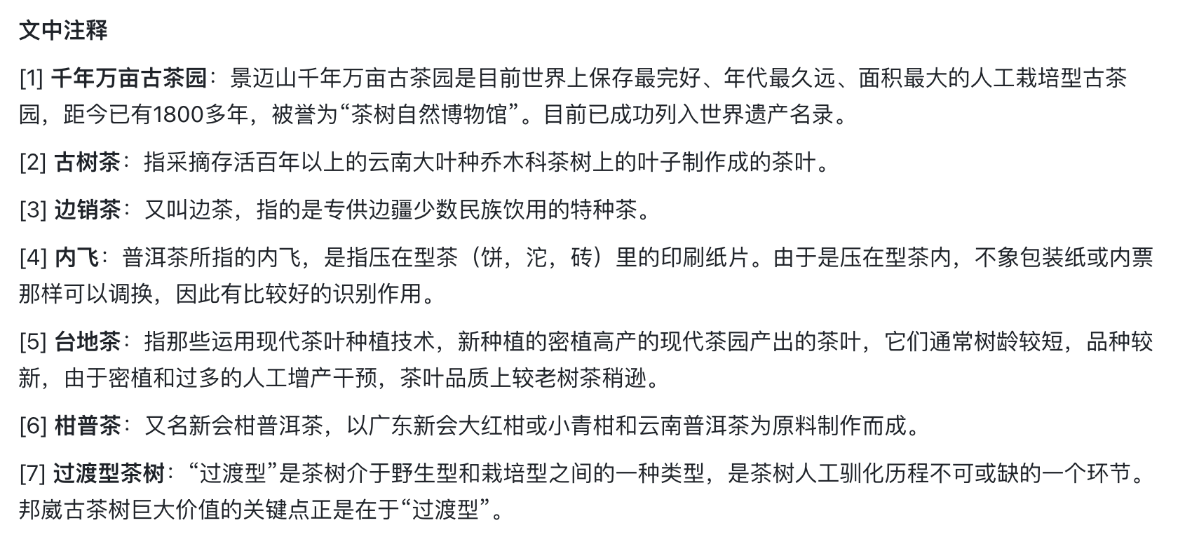 1.以古茶树为产品核心原料