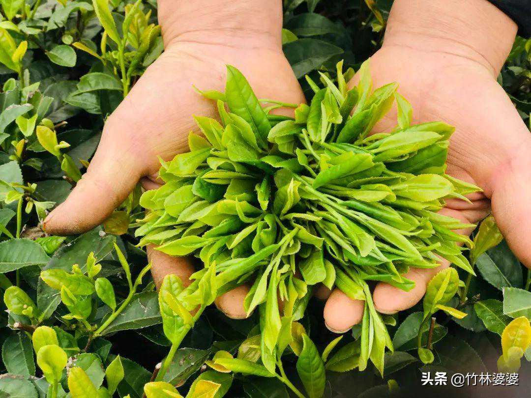 1采摘茶青亲自摘取的茶青,绿油油的,在微风吹拂下,青翠欲滴的样子专门等着勤劳的双手多采撷。