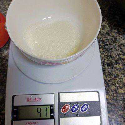 1、先将所有原材料用量用厨房称称好备用。这里是40克白砂糖。