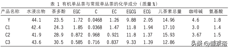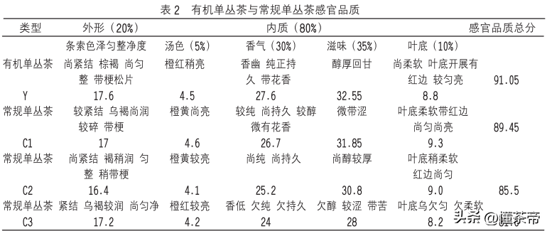 还别说,真有人研究者对比了他们之间的区别。他们以一款有机单丛和三款常规单丛进行了内含物质分析以及感官上的评分。