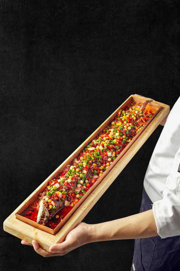 招牌菜-疯狂带鱼严选体长50cm-80cm的深海带鱼,加入调料腌制8小时以去腥入味,每一份腌制好的带鱼净重可达到500克。下油锅炸至外焦里嫩呈金黄色,熬制汤汁酱料后,混合仔姜蒜末、青红小米椒、干辣椒段、花椒、精三线肉丁、洋葱丁、孜然翻炒后,浇到带鱼身上。外酥里嫩的带鱼,飘香入味,超级下饭。