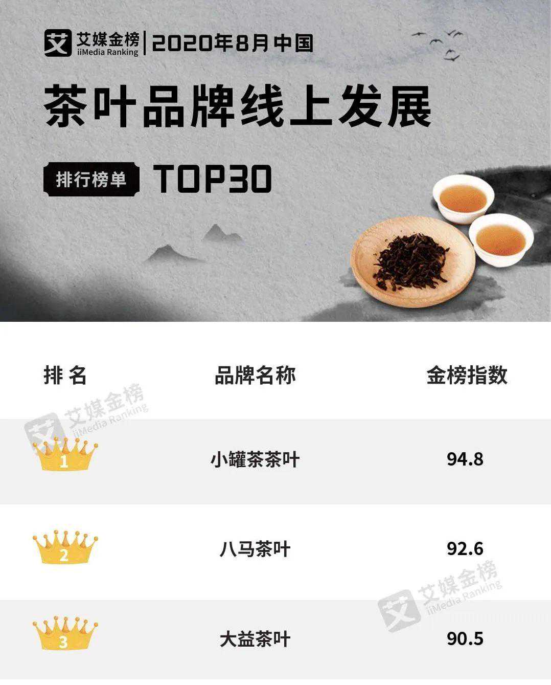 ▲小罐茶获评《2020中国茶叶品牌线上发展排行榜单TOP30》第1名|图源:艾媒金榜(iiMediaRanking)