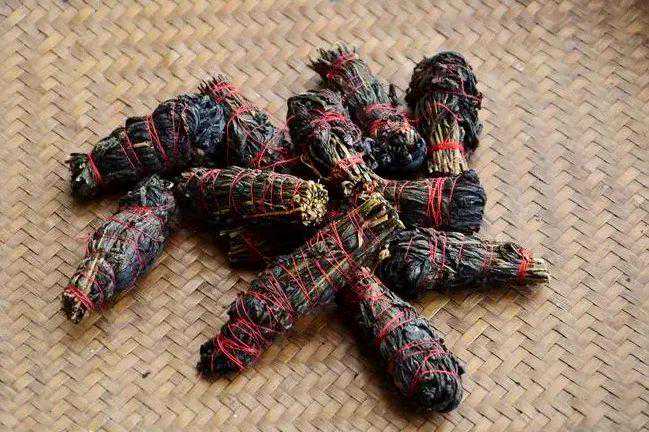龙须茶,原产于福建武夷山八角亭,属乌龙茶。因形似”龙须“而得名,制作时,用五彩线捆扎成束状,故又名“束茶”,酷似毛笔头。