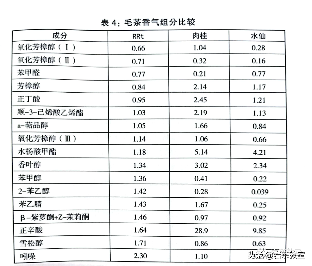 ▲水仙、肉桂毛茶香气组分比较,姚月明,陈永霖.武夷肉桂名枞的生化特性