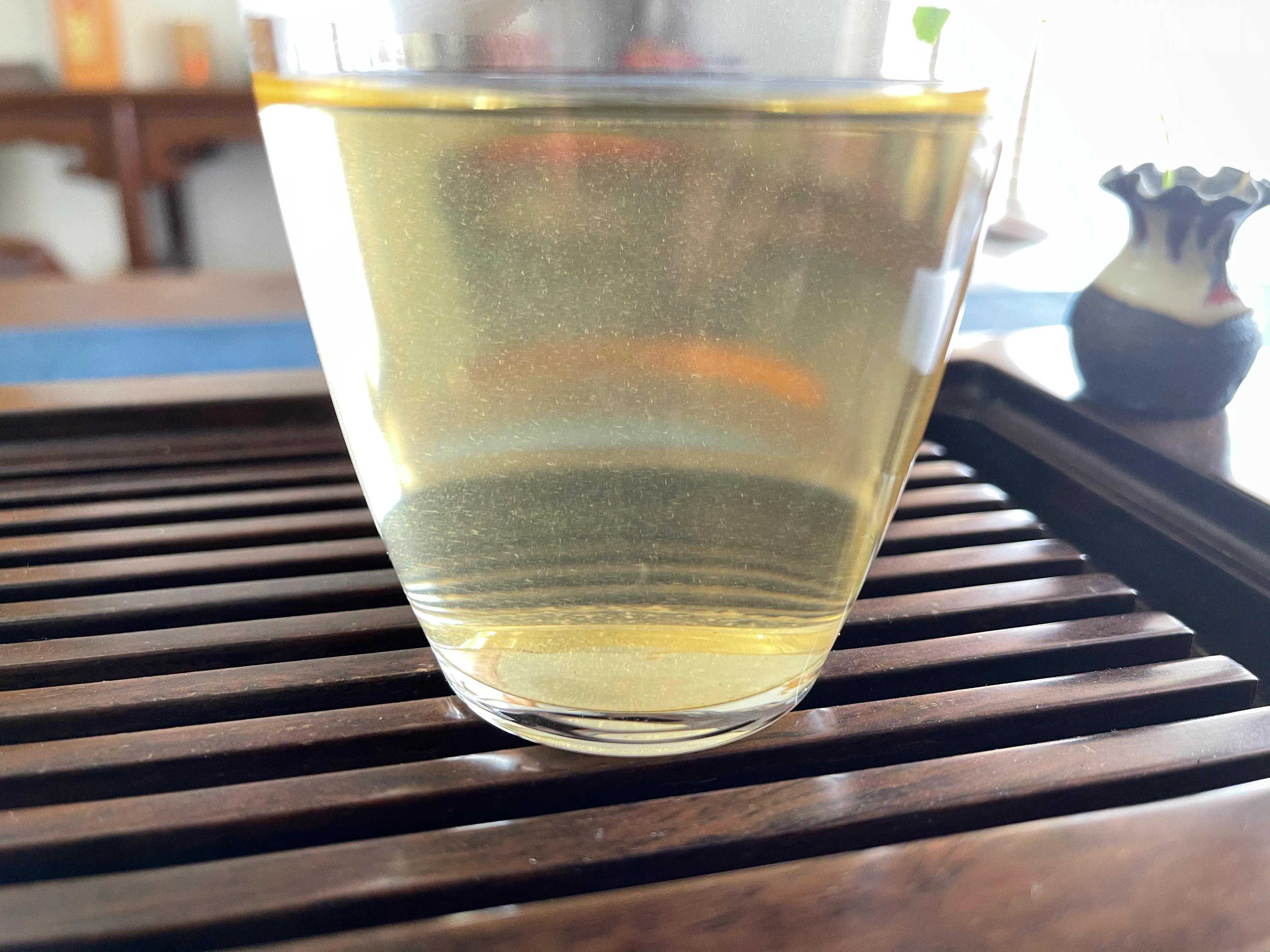 第二泡,7″出汤,汤色浅黄略微泛绿,微清亮,