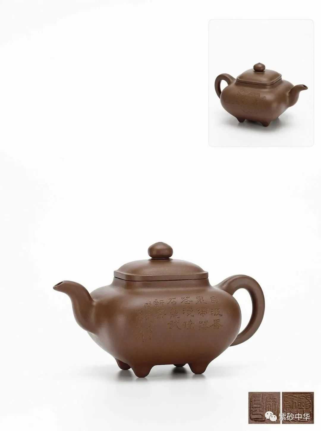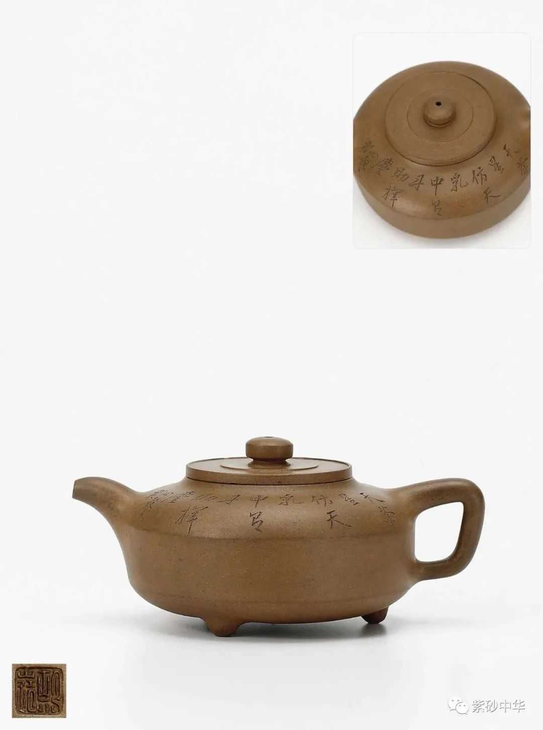 当代顾绍培制沈汉生刻紫泥三足逸泉壶
