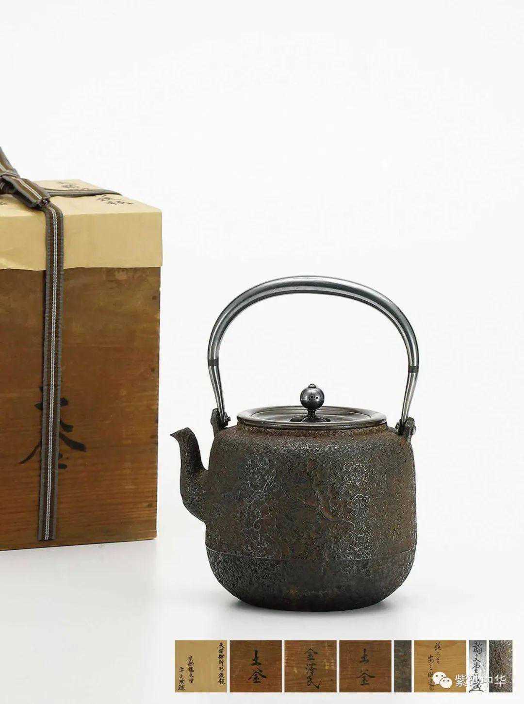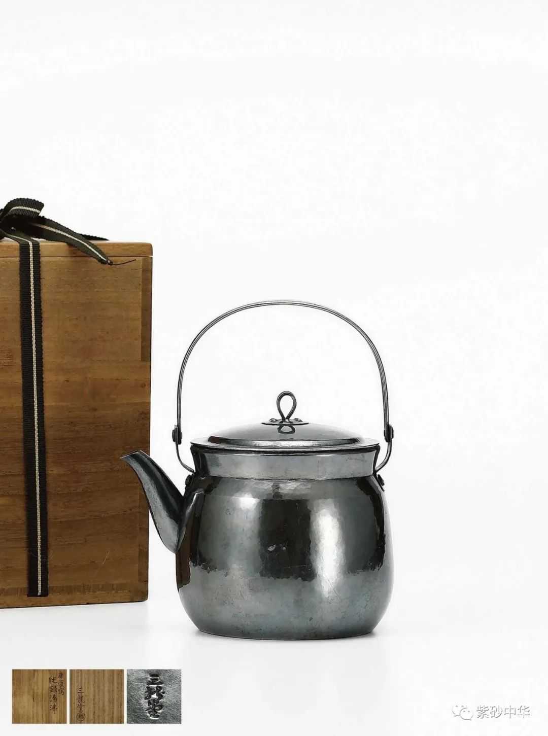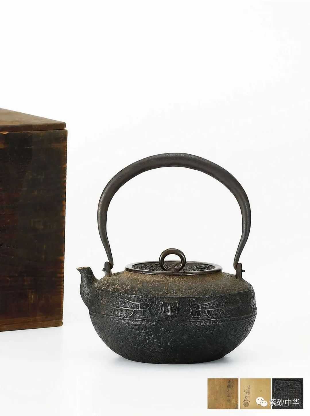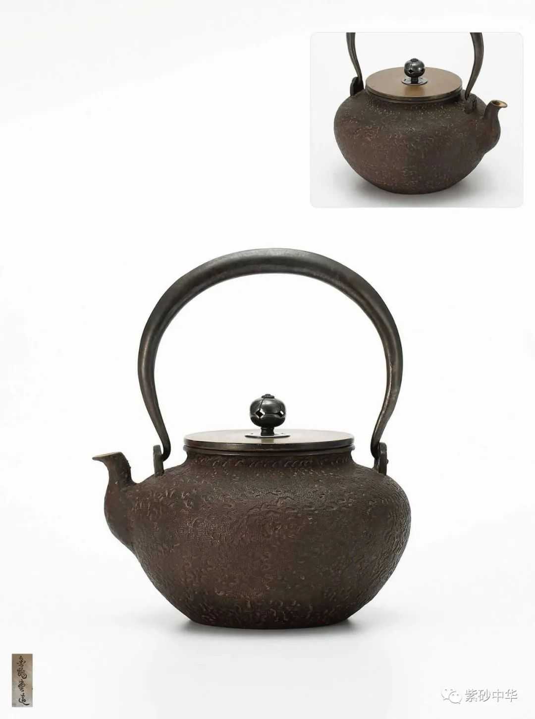 明治时期金寿堂雨宫造铜镜盖平圆形铁壶