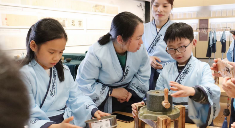 “和想象中的博物馆不同,馆内有很多互动装置和弧形的巨幕,能在身临其境中学习茶知识和茶文化。”