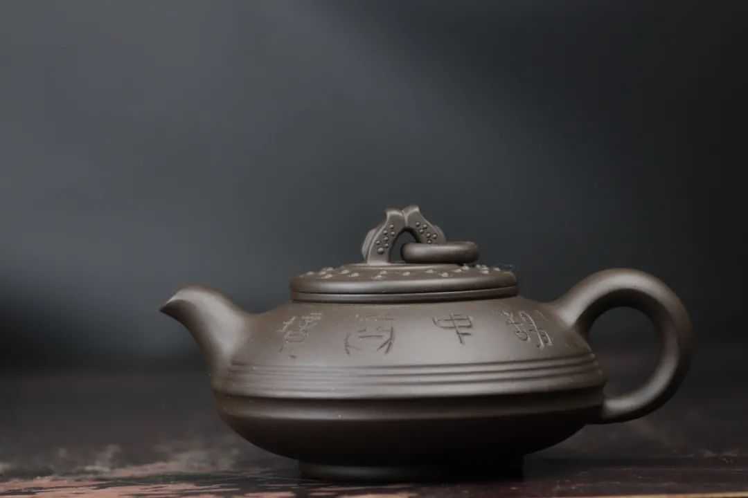 此款玉璧端肃稳重,古朴生雅。此壶壶体形似一整块玉璧,光洁如玉,细腻温润,泛着淡雅的光泽,褐色泥作底调,古韵悠长。