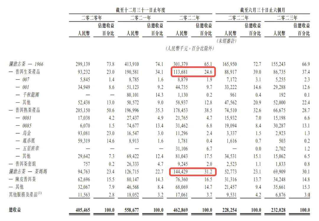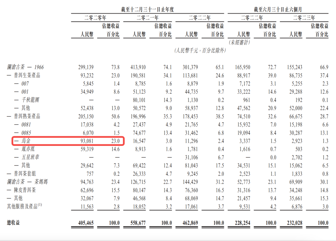 ▲2020-2023年按产品划分的收益明细|图源:澜沧古茶2023年招股书