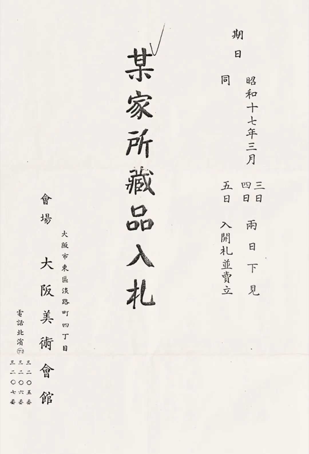 出版:《某家所蔵品入札》大阪美術俱楽部,昭和十七年三月五日,