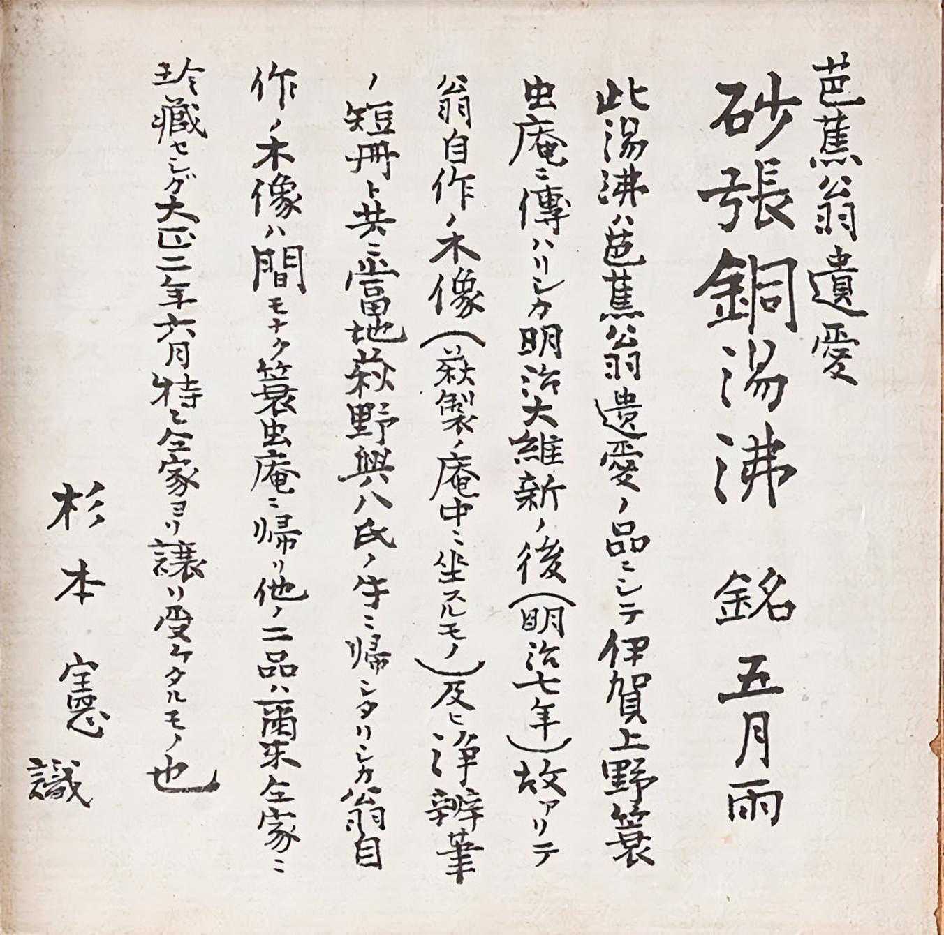 本件作品曾為芭蕉翁舊藏,芭蕉翁是日本文學史上最傑出的俳句大師之一,他的作品被廣泛地認為是日本俳句的代表作品,對日本文學的發展產生了深遠的影響。