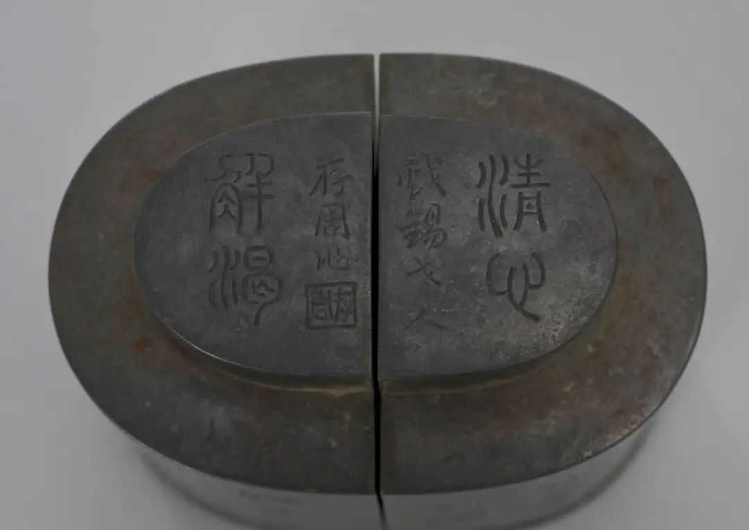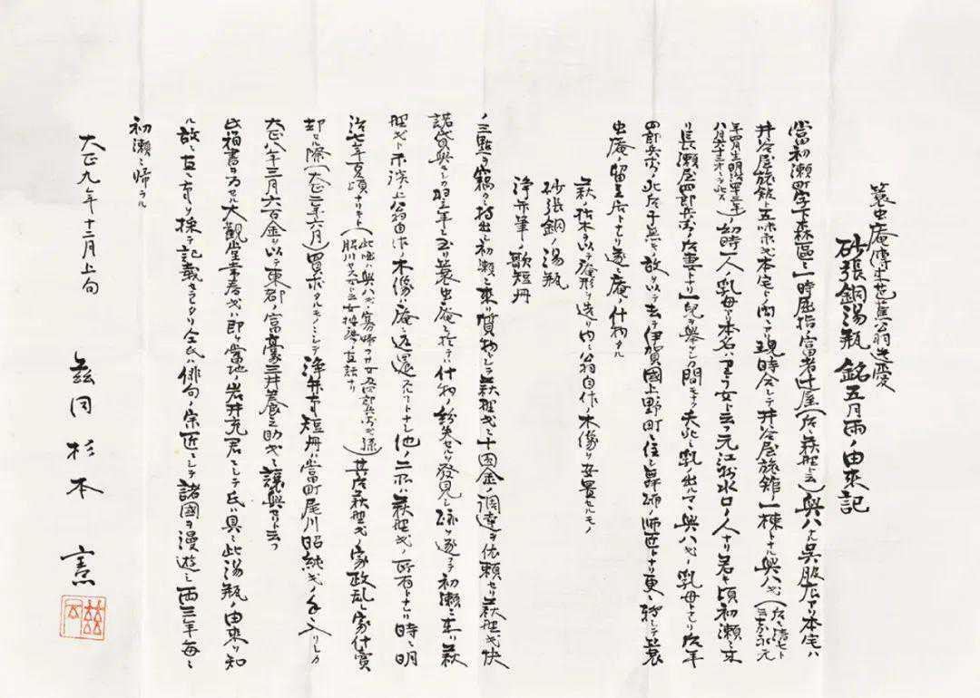 箱款:雪輪形文毛彫鐵精銀二重打湯沸金谷五郎三郎