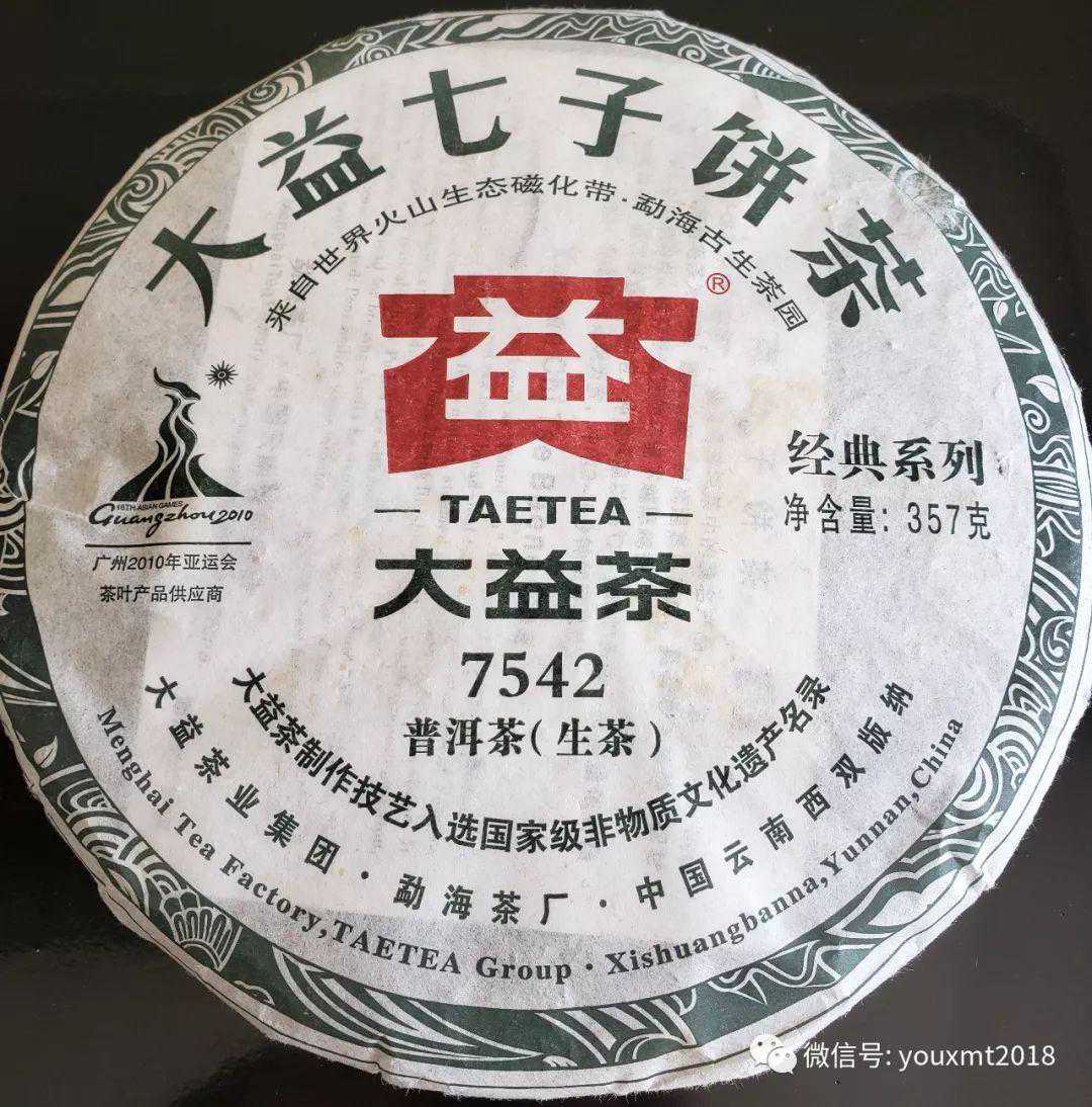 大益7542是大益出产量最大的青饼,以肥壮茶箐为里,幼嫩芽叶为撒面,研配得当,面茶色泽乌润显芽毫,心茶肥壮。该茶品香气纯正持久,有花果香,滋味浓厚回甘好,汤色黄亮,叶底匀齐。因其研配时主要以中壮茶箐为骨架,配以细嫩芽叶撒面,结构饱满,存放后期变化较为丰富,被市场誉为“评判普洱生茶品质的标准产品”。