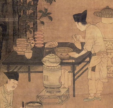 其做法就是不直接煮茶,而是将饼茶磨成粉,放置到茶器中,然后再加入适量的沸水调膏,再加入水成汤,这时可以在汤面上作画。这种吃茶的方式,主要流行于宋代。