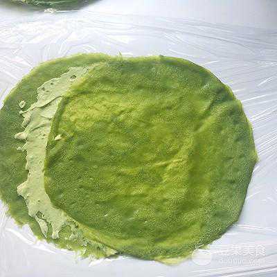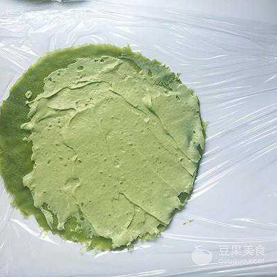 30、抹上适量的抹茶酱,再铺上一张面皮,位置摆放在上一张面皮中间即可