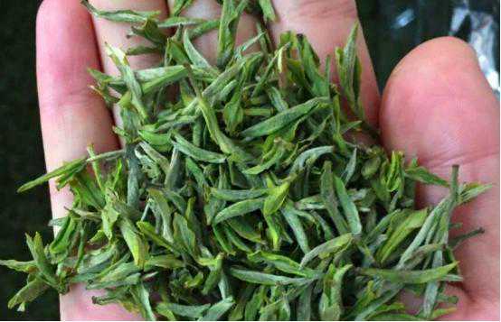 经过加工后的干茶,锋毫显露,外形细长挺秀,自然舒展,茶条匀齐,茶骨肥硕,翠绿鲜润的干茶散发出幽幽花香,淡雅怡人!