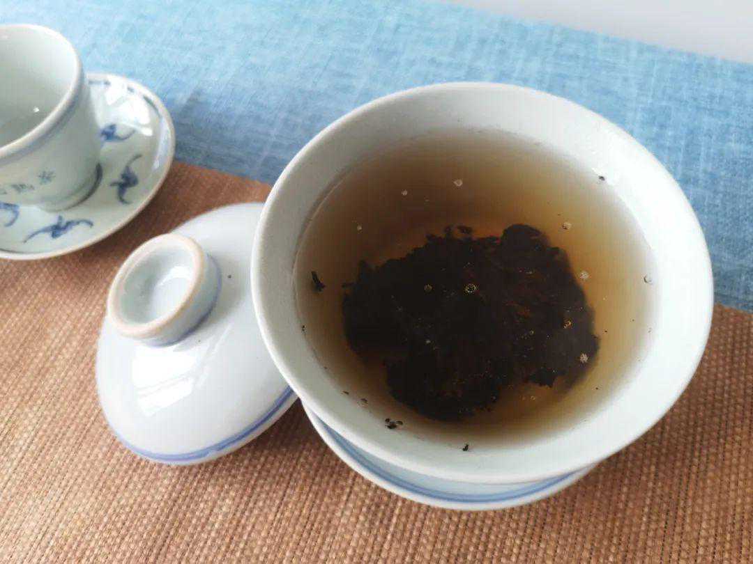 中段(4-6泡)汤色酒红,水路细腻富有层次,入口厚重饱满,口感舒畅,滋味变得更浓郁,有着突出的陈香香气,口腔被甜润的茶汤、浓厚的口感、回甘包裹。
